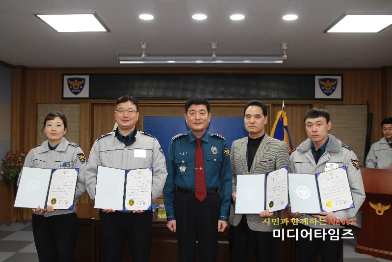 [미디어타임즈=문상수 기자] 인천남부경찰서(서장 조종림)는 27일 오전 9시경 2층 소회의실에서 서장 및 각 과장, 계·팀장이 참석한 가운데 유공경찰관 3명에 대한 표창 수여식을 가졌다.이날 남부서는, 지난21일 유관기관 합동 대테러 FTX 훈련에서 맡은바 임무를 성실히 해준 유공경찰관 4명에 대해 경찰서장 표창을 수여했다. FTX에서 유무선 정보통신 장비설치 및 운용으로 현장활력 맞춤형 정보화장비지원을 한 정보통신계 경위 조교환,가상테러상황에서 폴리스라인 설치 및 주변 경계 교통통제 등을 통해 초동조치를 수행한 문학지구대 경위 김성복훈련 상황설명 등 각 상황에 대한 자세한 설명으로 FTX의 아나운서의 역할을 함으로써 훈련의 흐름을 원활히 진행하게한 교통관리게 전미숙 경장가상테러상황에서 신속한 경계지점 설치 및 면밀한 경계태세 자세를 지켜준 방범순찰대 수경 주수빈 대원에게 각각 경찰서장 표창과 부상품을 수여했다. 이 자리에서 조종림 남부서장은 “훈련기간동안 날씨가 많이 추웠는데도 직원 및 대원들이 FTX가상훈련을 잘 수행해주어 감사하다”며 감사의 뜻을 전했다.