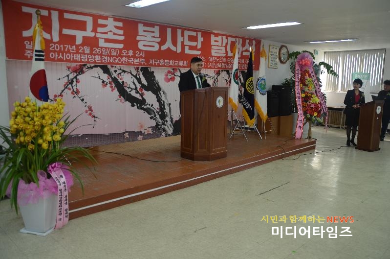 [미디어타임즈= 신정식 기자] 아시아태평양환경NGO한국본부(본부장 신용현)는 26일 오후 2시 대한노인회 광명시지회 2층 대강당에서 다문화 가족으로 구성된 ‘지구촌 봉사단’(단장 야마노우찌 다쓰오) 발대식을 개최했다.