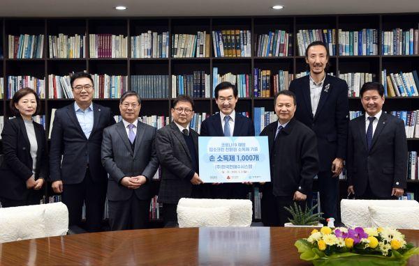 ㈜한국전해수시스템은 살균수장치, 친환경세제 등을 제작하는 수원시 소재의 기업으로 이날 전달된 물품은 경기사회복지공동모금회에 기탁처리될 예정이다.