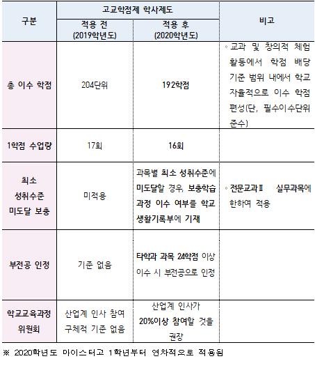 이를 통해 교육부는 마이스터고가 학사 운영의 유연성을 확보할 수 있어 학생들에게 폭넓은 과목 선택과 성취수준 미도달 과목에 대해 부족한 부분의 학습을 보충할 수 있을 것으로 기대하고 있다.