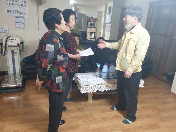 또한, 코로나19 대응을 위한 국민 행동수칙인 자주 손 씻기 및 외출 시 마스크 착용하기, 사람이 많은 곳의 방문 자제하기 등에 대해 안내하고 휴관기간 동안 경로당 실내를 소독할 수 있도록 소독제 등 방역물품을 전달했다.