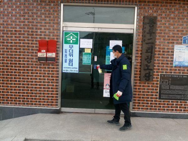 청운면 경기 행복마을관리소는 지난달 24일부터 코로나19의 지역사회 내 유입과 전파를 방지하기 위해 버스정류장, 경로당, 초등학교 등에 대한 방역활동을 지속적으로 실시하고 있다.