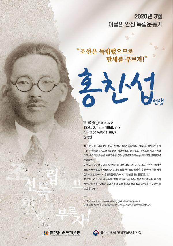 안성시는 3월 이달의 안성 독립운동가로 홍찬섭 선생을 선정했다.