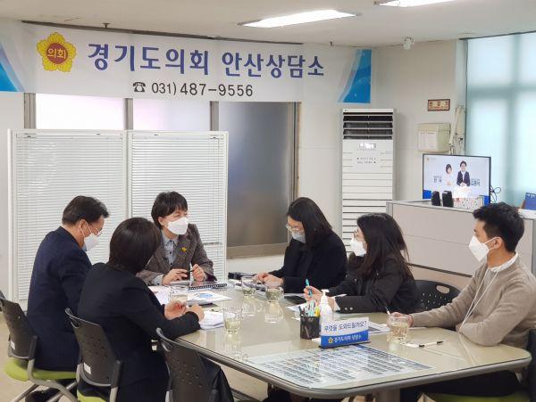 경기도의회 안산상담소에서 원미정의원은 지난 2월28일 경기도 시장상권진흥원 곽규근 사업본부장, 김서일 소상공인팀 과장 외 관계자들과 함께 경기도 골목상권 조직화 지원사업을 위해 간담회를 갖고 사업현황에 대한 개요와 더불어 추가로 보완해야 할 사항에 대해서 논의했다.