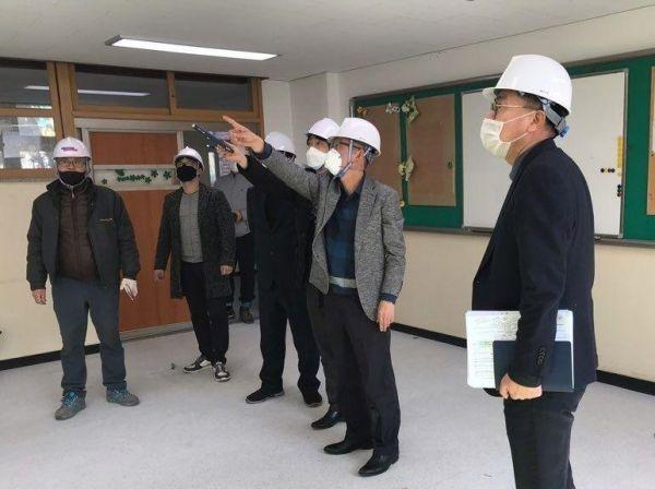 이날 도교육청은 석면 해체·제거 작업이 마무리 단계에 들어간 용인 대지중학교와 대지초등학교를 대상으로 공사 진행상황, 공사장 주변 위험요소를 점검했다.