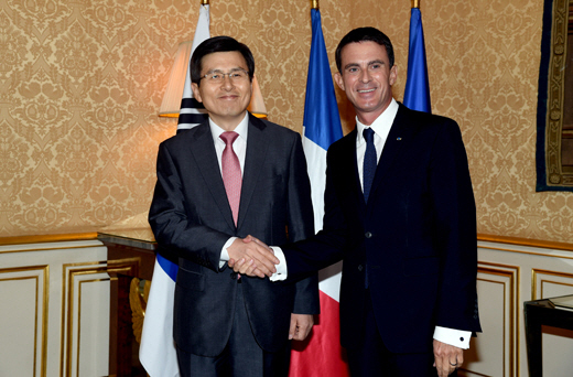황교안 국무총리와 마뉴엘 발스 프랑스 총리는 17일(현지시각) 회담 및 확대 오찬회담을 열고 미래 신산업, 과학기술 및 창조경제 분야 등에서 실질적인 동반자 관계를 구축하기로 합의했다.
