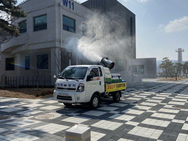 원주시 농업기술센터는 원주축산업협동조합과 합동으로 코로나19의 지역사회 전파를 막기 위해 지난 2일 흥업면 일대에서 긴급 방역을 실시했다.