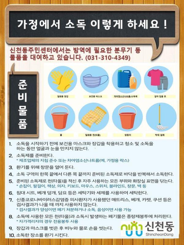 더불어 신천동은 새마을회 및 통장협의회, 주민자치회 등이 참여한 마을방역단을 구성하고 지난달 15일부터 관내 전 지역을 6개 구역으로 나누어 구역별로 2회 이상 방역을 완료했으며 2월 29일부터는 모든 유관단체가 자원봉사로 참여하는 통합방재단으로 확대 운영하고 있다.