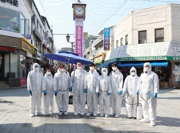 최근 코로나19가 시민사회로 전파되는 우려속에 더불어민주당 시의원과 도의원은 방역사각지대로 비춰질지 모르는 차없는 거리에서 터미널까지 소독방역을 했으며 주변 상가를 방문해 관계자들에게 어려움을 함께 이겨내자고 하는 등 코로나19 확산 방지에 적극 동참할 것을 당부했다.