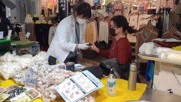 이미 지난 2월부터 매주 금요일 구리농수산물시장 종사자들을 대상으로 실시하고 있는 찾아가는 건강관리서비스를 전통시장 점포로 확대해 최근 시민불안의 정점에 서 있는 코로나19 감염예방 교육을 함께 진행했다.