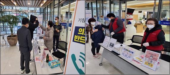 평택시 지산동 통장협의회는 지난 2일부터 코로나19 확산방지를 위해 지산동을 방문하는 민원인을 대상으로 발열체크 및 손소독을 실시하고 있다.