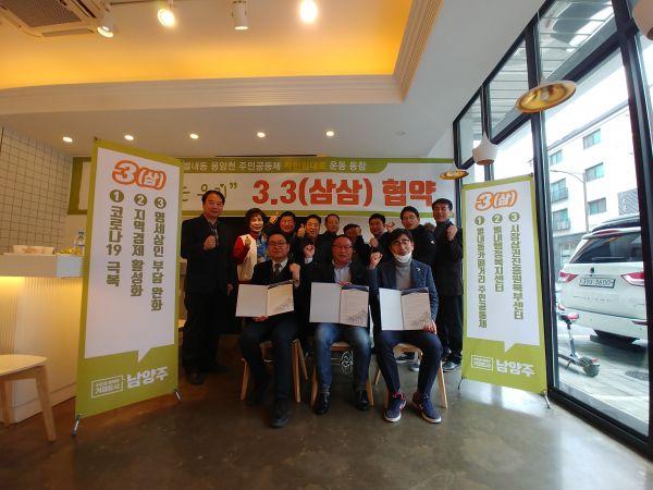 남양주시 별내행정복지센터는 용암천 주민공동체, 경기도 시장상권진흥원 북부센터와 지난 3일 별내동 카페거리에서‘33협약식’을 개최했다.