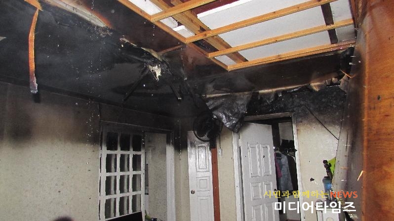 | 부평구 산곡동 주택 화재발생 30대 외국인 근로자 자체 진화현장. <ⓒ미디어타임즈> |