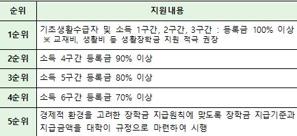 국고 지원 시 장학금 증액 및 등록금 수준을 반영해 학비 부담 완화 노력