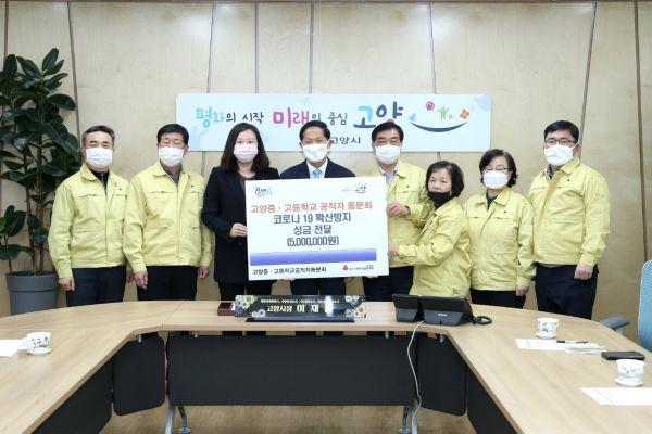 고양시는 지난 3일 고양시청에서 고양시 취약가구의 코로나 19 감염 예방을 위해‘고양중·고등학교 공직자 동문회 코로나 19 감염 예방을 위한 성금전달식’을 가졌다고 밝혔다.