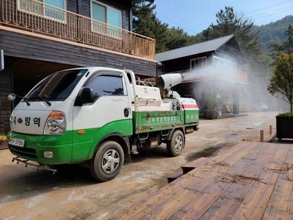 많은 관광객들이 방문하는 산림문화체험관과 유아숲체험관은 지난 3일 자체 방역 차량을 이용해 특별 방역을 실시했으며 근무자 마스크 착용 의무화, 손소독제 비치, 홍보물 부착 등으로 코로나19 예방에 힘쓰고 있다.