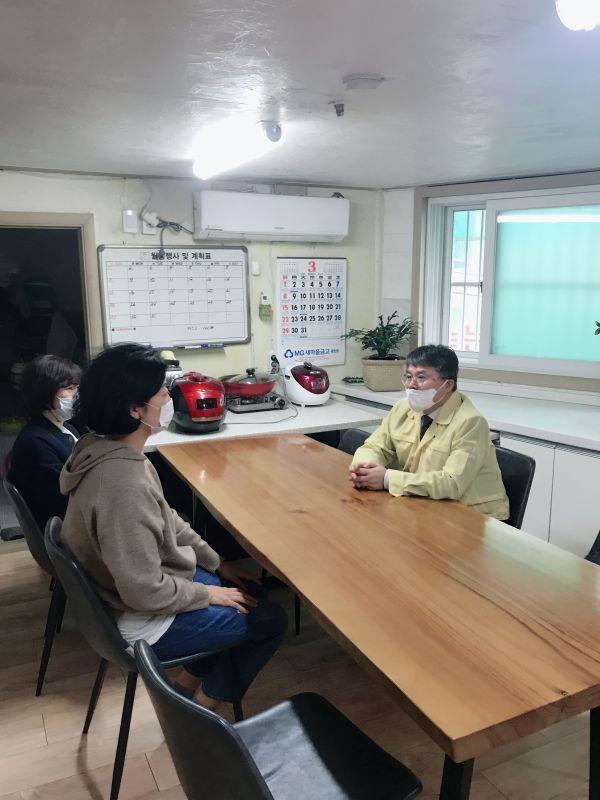 이날 홍인성 구청장은 시설을 방문해 코로나19 대응상황을 꼼꼼히 점검하고 종사자들의 노고를 격려하며 시설운영에 대한 애로사항을 청취했다.
