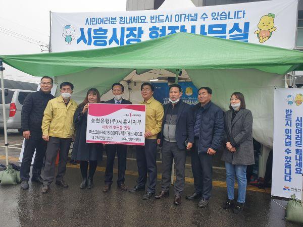 농협은행 시흥시지부에서는 코로나19에 도움이 됐으면 한다며 마스크 1만5,000장과 백미 400포를 기부했다.