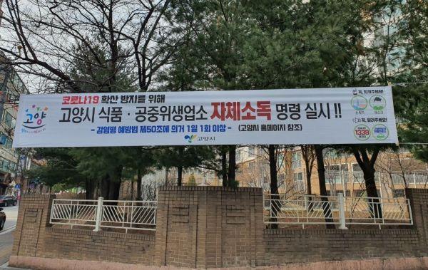 이에 시는 이행의무가 있는 전 업소에 소독명령 안내문을 발송하고 고양시 홈페이지에 영업주가 스스로 손쉽게 이행할 수 있도록 소독제 종류 및 소독방법 등을 게재하는 한편 상가밀집지역과 각 동행정복지센터 등에 자체적인 소독을 이행하는 안내 현수막과 포스터를 게첨하는 등 적극적인 홍보 활동을 펼치고 있다.