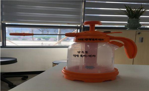 휴대용 방역기기 이용방법은 행정복지센터에 전화로 사전 문의 후 방문 신청해 사용하면 된다.