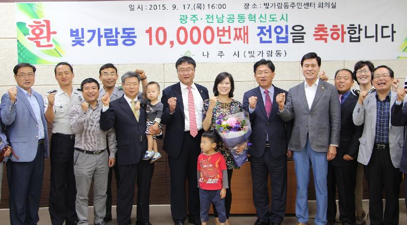 광주·전남공동혁신도시 빛가람동 전입인구가 2014년 2월 24일 공식 업무를 시작한지 1년 7개월만인 9월 15일 1만명을 돌파했다.