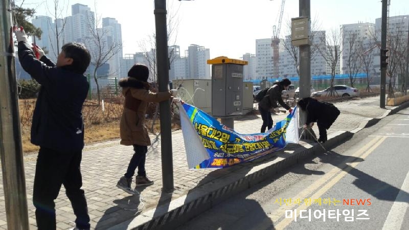 [미디어타임즈=홍기연 기자] 인천 서구 청라2동(동장 윤효영)은 지난 27일 다가오는 봄을 맞이하여 불법현수막 및 벽보를 정비하는 ‘새봄맞이 불법광고물 일제정비’를 실시했다.