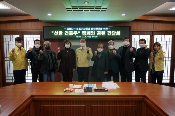 의정부시는 지난 4일 신관 소회의실에서 전통시장 및 상점가 상인회장, 한국공인중개사협회 의정부지회장 등 관계자들과 함께 코로나19 조기극복과 상생방안을 위한‘선한 건물주’캠페인 관련 간담회를 개최했다.