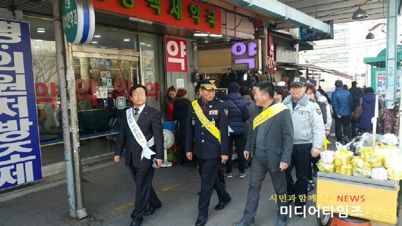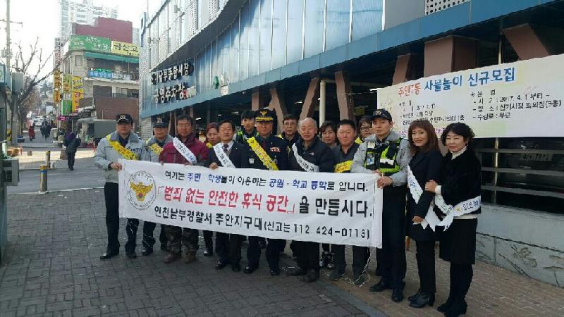 [미디어타임즈=문상수 기자] 인천남부경찰서(서장 조종림) 주안지구대는 지난 27일 신기·남부종합시장 일대의 우범지역(공원 등)을 순찰하며 청소년 선도를 위한 민·경 합동 순찰 캠페인을 실시했다.이번 캠페인 순찰은 방학기간 중 청소년들의 음주·흡연 등 일탈행위와 폭행·갈취 등의 위법행위에 대한 예방취지로 실시됐다.이날은 남구청소년육성회, 신기시장상인회 등 30여명이 합동으로 청소년 유동인구가 많은 인천 남구 주안3·7동 및 신기시장 주변일대의 공원 및 골목길 등을 순찰하며 우범 청소년들에 대한 선도활동을 펼쳤다.캠페인을 행사에 참여한 주안지구대 경장 류기무는 “시장주변에서 청소년 흡연행위 및 절도 신고를 받고 출동했을 당시 주변의 도움이 필요하다고 생각되었는데 이번에 협력단체 및 시장 상인회 회원들 모두 나서서 캠페인을 벌여 뜻 깊은 시간을 보냈다”고 말했다.한편 조상철 주안지구대장은 “주민이 안심하고 살 수 있는 치안환경 조성을 위해서는 무엇보다 많은 사람들이 모이는 시장주변 치안 확보가 중요하다“ 면서 “앞으로도 지속적인 순찰 및 홍보활동을 통하여 재래시장이 활성화 될 수 있도록 최선을 다하겠다.”고 말했다.