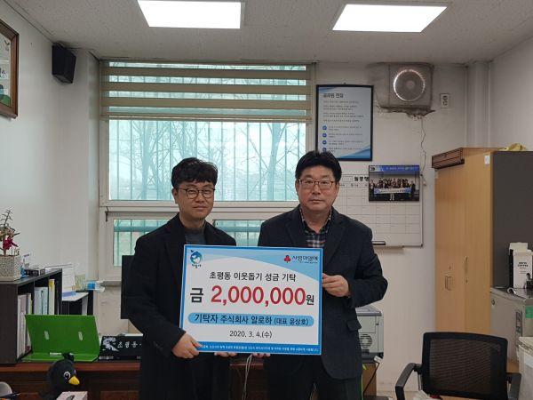 ㈜알로하 건설, 초평동 이웃돕기 성금 기탁