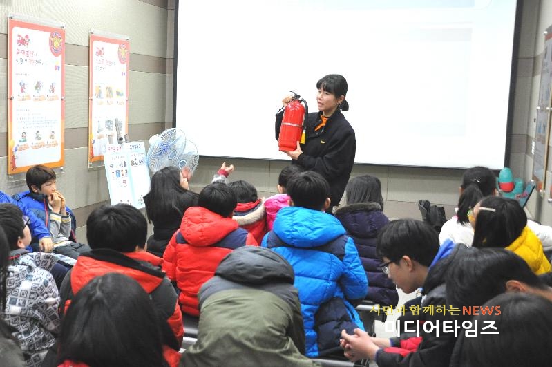 [미디어타임즈=문상수 기자] 인천남부소방서(서장 김성기)는 28일 본서 소방홍보전시관에서 예향꿈터 지역아동센터(남구 학익동 소재) 학생 및 직원 30여명을 대상으로 ‘소방안전 체험교실’을 운영했다.이번 교육은 소화기 ․ 소화전의 사용법을 교육하고, 물소화기 및 교육용 옥내소화전을 활용한 체험과 지진발생 시 대피요령, 심폐소생술 ․ 하임리히법 등을 교육하여 안전사고에 대한 경각심을 심어주는 계기가 되었다.또한, 소방차량에 탑승하여 화재 · 구급출동 장비를 견학하면서 평소에 궁금했던 소방차량 내부 모습 및 각종 장비의 기능에 대한 갈증을 해소하였다.소방서 관계자는“소방안전 체험교실은 남녀노소 누구나 보고 듣고 체험함으로써 긴급상황에 신속히 대처할 수 있는 능력을 키워주기 위해 실시하고 있으며, 교육을 받고 싶은 시민이라면 누구나 인천남부소방서 예방총괄팀(☎ 032-870-3239)로 연락하면 된다.”고 말했다.