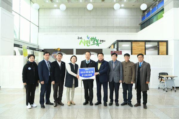 구리시체육회는 4일 구리시청 복지회의실에서 코로나19 바이러스 감염증 우려로 어려움이 예상되는 취약계층의 방역물품 구입을 위해 사용해달라며 지역주민과 가장 밀접한 구리시종합사회복지관에 후원금 500만원을 기탁했다.