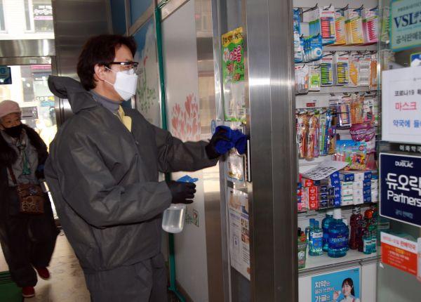 방역에 참여한 시민들은 방역복과 보안경 등을 착용하고 수동분무기와 소형분무기 등을 사용해 건물 상가 등의 출입구와 승강기, 공중화장실 등 여러 사람의 손이 닿을 수 있는 곳에 소독약을 뿌려 닦아냈다.