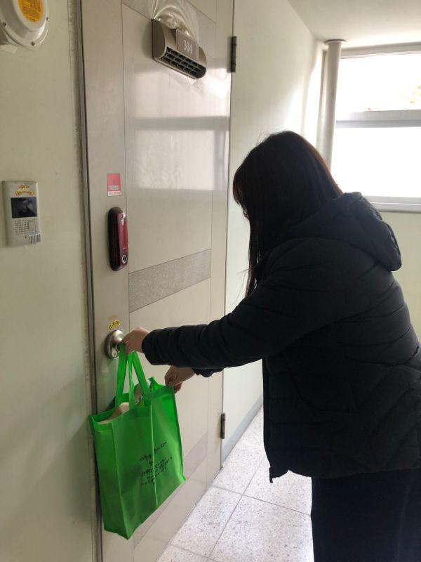 감염병 예방을 위해 어르신들께 직접 전달하지 않고 문 앞에 반찬을 배달한 후 전화로 이를 안내했다.