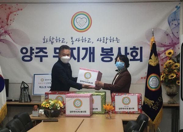 양주시 양주무지개봉사회는 5일 코로나19 확산방지를 위해 양주시 드림스타트센터에 마스크 600매를 전달했다고 밝혔다.