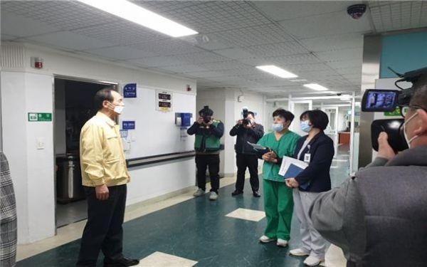 최문순 지사는 원주의료원에서 권태형 의료원장, 원찬식 진료처장으로부터 코로나19 감염병관리기관 의료자원 현황과 음압병상에 입원중인 확진환자 10명의 건강상태는 모두 양호한 것으로 보고 받고 음압격리병동 근무 의료진의 노고에 고마움을 전했다.