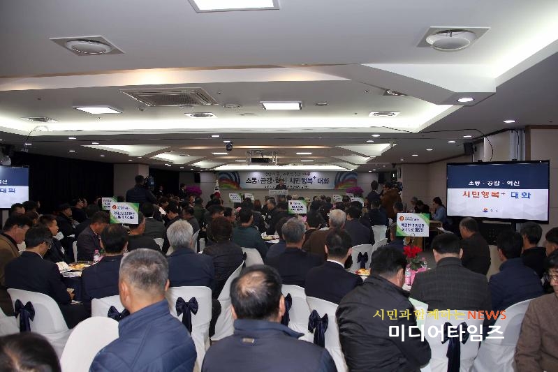 [미디어타임즈=문상수 기자] 유정복 인천시장이 지난 28일 옹진군을 연두 방문해 당면한 군정 현안사항에 대해 군민들과 함께 “시민행복더하기 대화’의 시간을 가졌다. 이번 행사는 옹진군의 주요 현안사항에 대해 주민과 시의 해당 국․과장이 테이블별로 참여, 토론하는 방식으로 진행됐다. 이어 진행된 토론회에서는 서해5도서 및 근해도서 주민들 150여명이 참석하여 여객선 준공영제 서해5도 시범시행, 연륙․연도교 건설, 백령병원 전문 의료진 지원, 새마을회관(장학관) 건립비 지원 등 총11가지 주제로 열띤 토론을 진행했다.토론은 각 테이블 별로 지정된 군의 해당 과․팀장이 현안사항을 설명하면 주민이 궁금하거나 건의할 사항을 질의하고 시의 관련 국·과장이 이에 대해 답변하는 방식으로 진행됐다.특히, 유 시장은 각 테이블을 순회, 지역 주민의 목소리를 직접 청취하는 등 주요현안사항을 직접 확인하고 토론 이후에는 테이블 별로 정리된 향후 조치계획에 대한 결과 발표의 시간도 가졌다.유 시장은 “토론회에서 수렴한 의견을 적극적으로 검토해 주민 불편을 최소화 할 수 있도록 노력하겠다”며 “우선 시급한 과제부터 하나하나 풀어가도록 하겠다”고 말했다.