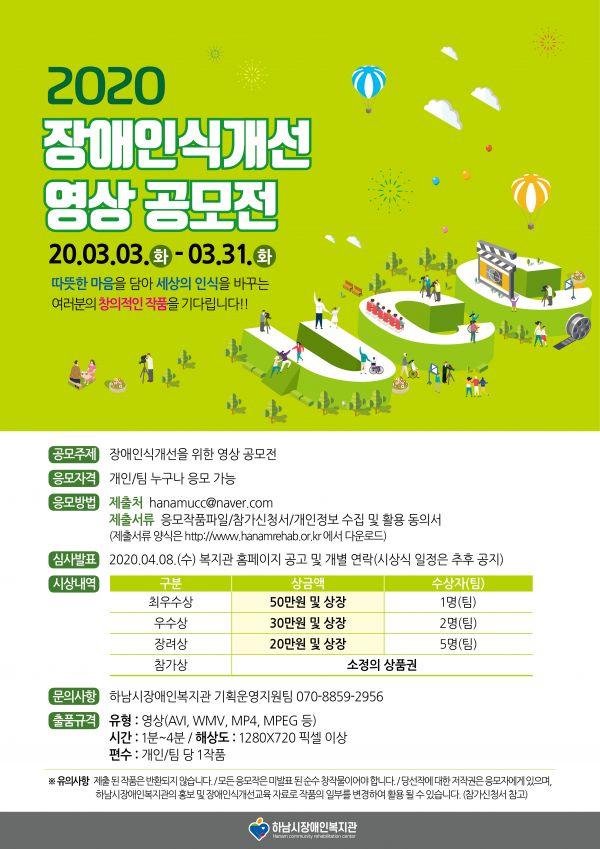 하남시장애인복지관은 제40회 장애인의날을 맞이해 장애인에 대한 이해와 올바른 인식개선을 위한 목적으로 ‘2020 장애인식개선 영상 공모전’을 개최한다.