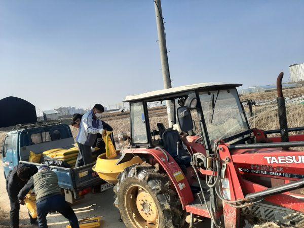 작년부터 김포시 농업경영인연합회원들이 토양개량제 살포 업무를 맡아 시행하고 있으며 올해도 농업경영인 연합회 회원 100여명이 참여해 공동살포를 진행하고 있다.