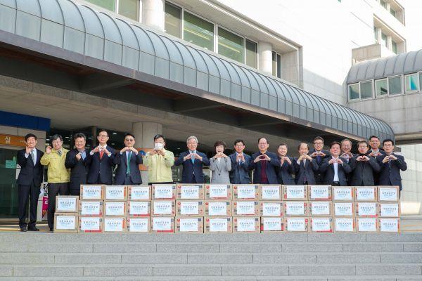 도교육청 직원들의 따뜻한 마음으로 십시일반 모집된 구호물품은 코로나 확산방지를 위해 헌신적으로 치료에 매진 중인 의료진의 체력보존과 기력회복을 위한 식사대체용 단백질쉐이크, 에너지바 등 간편식으로 구성됐다.