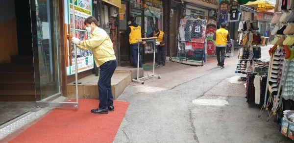 특히 사람들 접촉이 많은 출입문과 손잡이는 일일이 찾아 닦고 소독하고 공중화장실도 집중 방역했다.