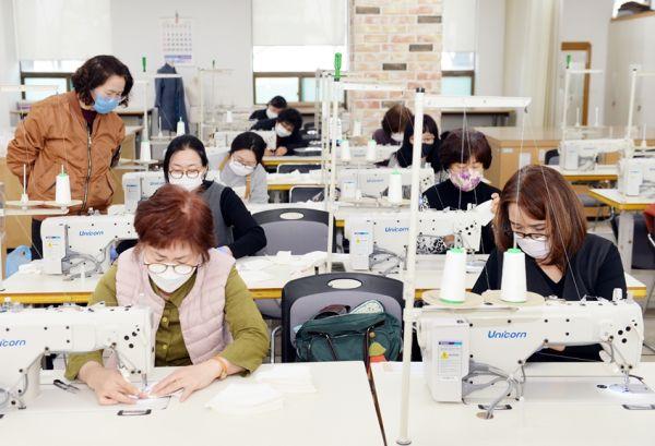 이를 위해 평생학습관 학습동아리인 ‘혜윰’의 생활한복 강사와 수강생 봉사자 11명이 자발적으로 참여해 3월 9일부터 13일까지 1일 500~600개를 제작할 계획이라고 전했다.