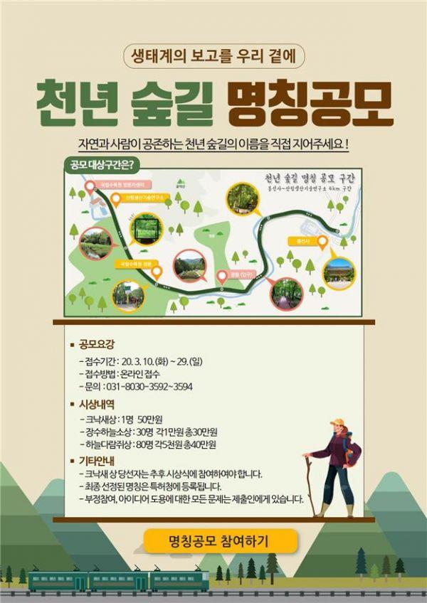 선정된 명칭은 생물권보전지역 지정 10주년에 맞춰 오는 6월경 열릴 ‘숲길 명칭 선포식’을 통해 발표하고 향후 특허청 상표 등록 후 경기도 및 유관기관에서 공식적인 명칭으로 활용될 예정이다.