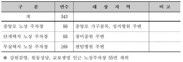 무료 개방 대상은 민간에 관리 위탁 중인 유료 노상 주차장 가운데 중심 상권인 단계택지, 무실택지, 중앙로 등 3개소 343면이다.