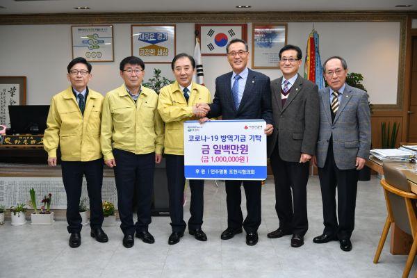 민주평화통일자문회의 경기포천시협의회는 10일 코로나19 방역기금에 사용해달라며 100만원 성금을 포천시에 기탁했다.