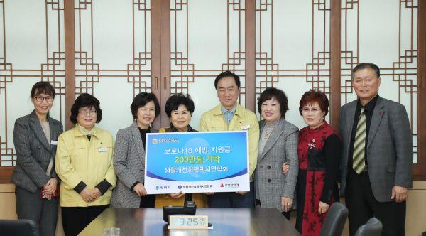 생활개선회평택시연합회는 지난 9일 코로나19가 확산하고 있는 가운데, 평택지역 코로나19 극복을 위한 방역물품 구입에 써 달라며 성금 2백만원을 기탁하고 ‘힘내라 평택’의 기부릴레이에 동참했다.