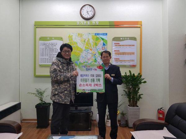 양촌읍 소재 예담 커머스는 지난 6일 장기본동행정복지센터를 방문해 저소득층을 위해 휴대용 손소독제 720개를 기탁했다.