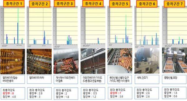 이 결과, 조사 대상 농장에서는 승강기 탑승 구간, 선별대 입구 등에서 달걀이 강한 충격을 받았고 해당 구역에 완충 유도장치를 만들어 보완하는 방법을 제시했다.