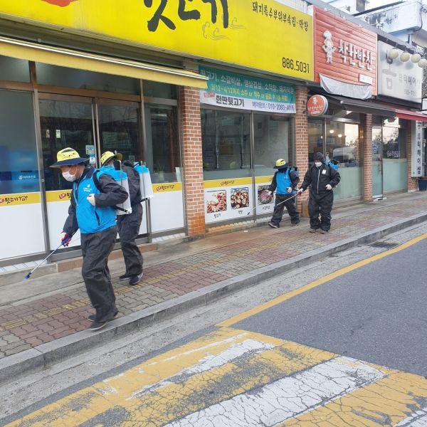 오학동 “구석구석 행복추진단”은 코로나 19의 급속한 확산 징후에 따라 지난 2월 27일 자체방제단을 조직하게 됐으며 주로 이동식 소독차량을 이용해 버스정류장과 어린이집, 복지시설, 종교시설, 아파트 단지 등 다중시설 50여 곳과 마을회관과 마을안길에 대한 소독을 실시해 주민의 불안감을 최소화 하고자 노력하고 있다.