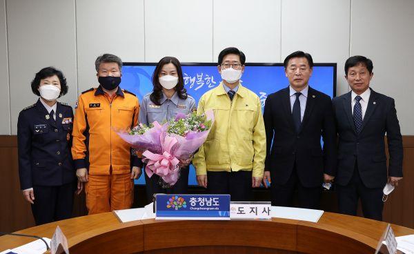 이성미 홍성읍 여성의용소방대원이 10일 도청에서 도민의 소중한 생명을 구한 공로를 인정받아 도지사 표창을 수여했다.
