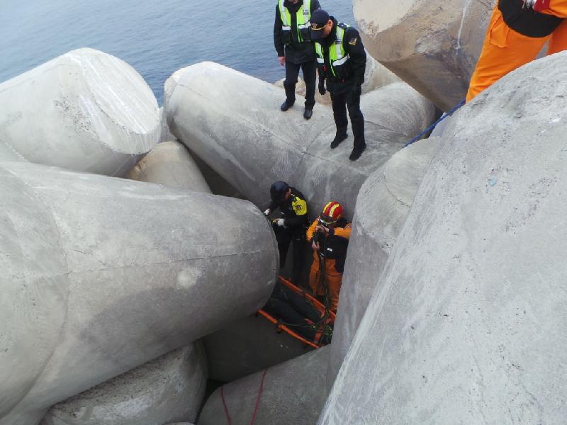 | 테트라포드에 추락한 낚시객 구조<미디어 타임즈> |